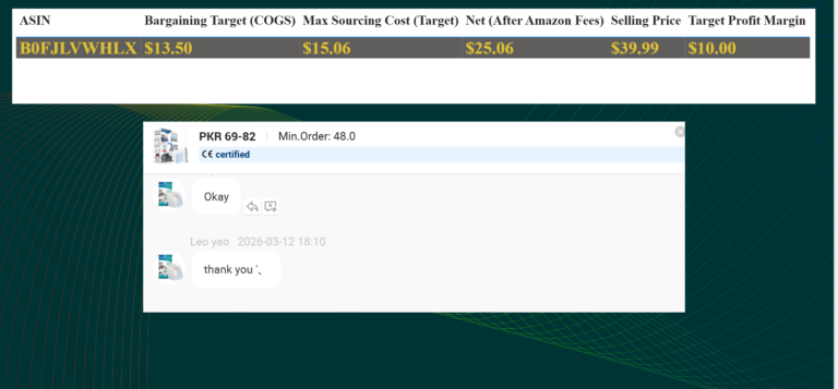 Sourcing: “The Alibaba chat shows a supplier with CE Certification and a low MOQ of 48 units. This is rare for such a high-volume product and allows for a ‘Low-Risk’ test launch before committing to a full container.”