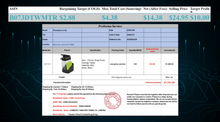 The Soap Dispenser with Sponge Holder represents a high-potential opportunity characterized by proven market velocity and consistent consumer demand. With nearly 2,000 units moving monthly and a healthy $24.95 selling price, the product offers a robust revenue floor. While current supplier quotations are on the higher side, my financial modeling identifies a path to a $10.00 per-unit profit by hitting a $4.38 total landed cost. The combination of DDP sea shipping viability and a 4.5-star market standard makes this an ideal candidate for a brand that focuses on supply-chain efficiency and high-volume sales.